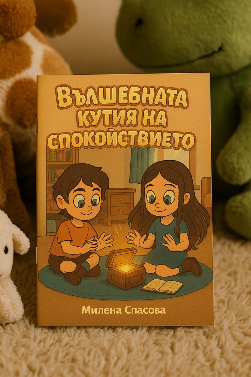 Книгата „Вълшебната кутия на спокойствието“ е създадена, за да ти даде прост и ефективен начин да помогнеш на детето да разбере емоциите си, без натиск, без напрежение и без трудни разговори. Тя работи чрез приказки, които говорят на езика на детското въображение — там, където думите понякога не стигат, но историите успяват.
